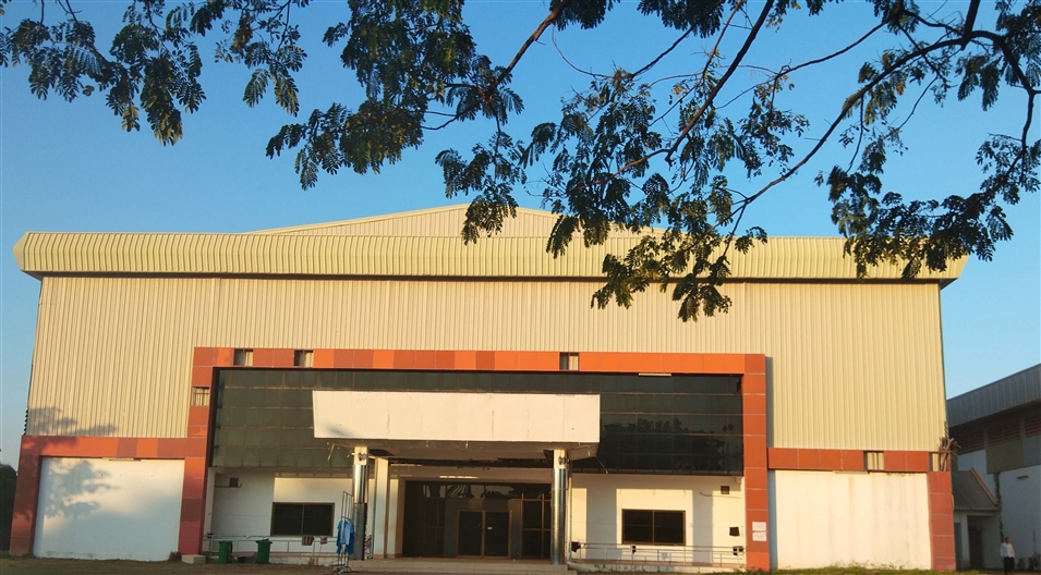 老撾國立大學的球館也在學校的東面,距離足球場約200米,球館內設有籃球場、排球場、羽毛球場,但球館一般有重要比賽才會開放,平常時間,學生多半在足球場或宿舍區(qū)打球。