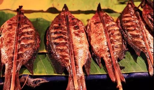 老撾多河流,自然產(chǎn)好魚,這里的魚個(gè)大柔嫩還鮮美多汁。當(dāng)?shù)厝俗钕矚g將這種扁魚烤著吃。而且烤的方法很獨(dú)特,把魚內(nèi)臟去凈后塞上一把新鮮的檸檬草。不但去腥,還讓魚平添一份檸檬的清香。最地道的老撾烤魚吃法是用生的綠菜葉子包裹著涼米粉、生茄子和蘸著調(diào)料的魚肉包一個(gè)大包,一口吞到嘴里,非常鮮嫩爽口。