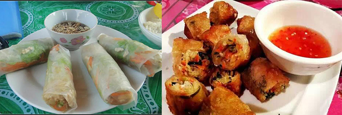 老撾的春卷通常會(huì)有蒸和炸兩種不同做法,蒸春卷很清淡,米皮很薄呈半透明,可以選擇蝦、雞肉、豬肉、薄荷葉及蔬菜等不同餡料,配上酸甜醬汁非常爽口,價(jià)格也很親民。