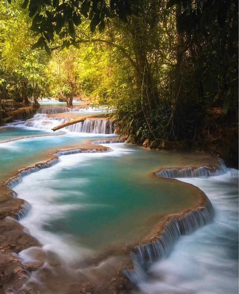 光西瀑布又叫金鹿瀑布,水流從100多米熱帶叢林中傾瀉流入湛藍(lán)的水潭中,非常有氣勢(shì)。瀑布周圍森林茂密,郁郁蔥蔥,水質(zhì)也清澈透藍(lán)。瀑布層層疊疊,順流而下,形成多個(gè)泛著藍(lán)綠色光澤的小水潭。
