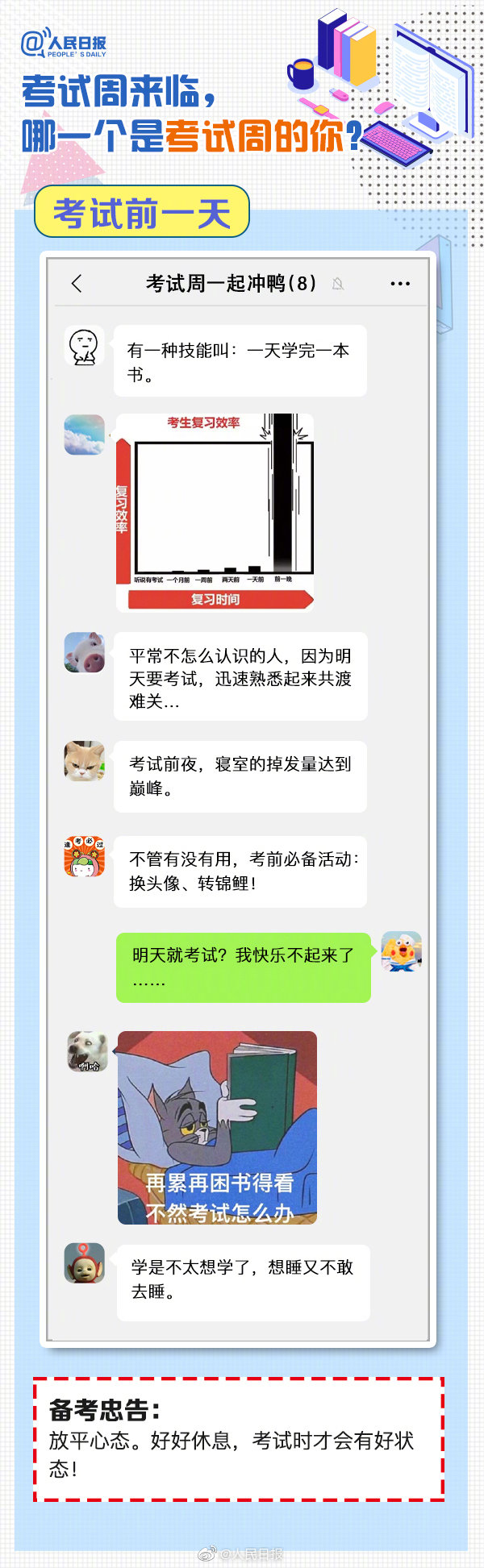 又到考試周,復(fù)習(xí)中的你,狀態(tài)如何?“寢室、食堂、圖書(shū)館三點(diǎn)一線”、“一天學(xué)完一本書(shū)”、“復(fù)習(xí)到頭禿”…這是考試周的你嗎?