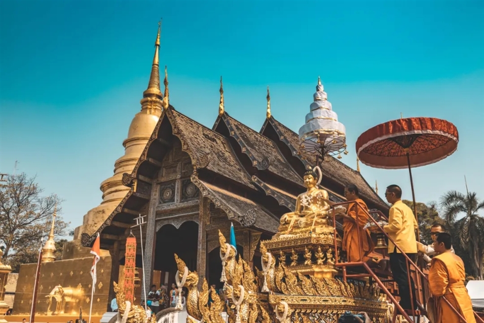 4月13日這天代表著一年的終結(jié),被稱為“馬哈宋干日”。作為一個(gè)全國大多數(shù)人們都信奉佛教的國家,宋干節(jié)的一天就是從前往寺廟開始,從虔誠地供奉物品到用干凈的水清洗佛像,甚至還會(huì)有佛像在街道上巡游。獨(dú)特的宗教文化給泰國的節(jié)日氛圍帶來一絲與眾不同的氣氛。