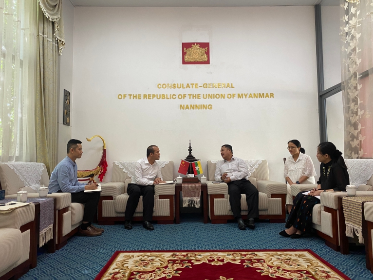 緬甸駐南寧總領(lǐng)事梭岱南對我司的到訪表示熱烈的歡迎,同時對我司搭建中國—東盟國際教育服務(wù)平臺,促進(jìn)中緬兩國的教育發(fā)展表示高度的認(rèn)可,談到中緬兩國建交70周年以來,兩國有著傳統(tǒng)友好關(guān)系的鄰邦,經(jīng)貿(mào)、文化、教育、旅游等方面的交流與合作不斷深化,成效顯著,并表示我司在發(fā)展教育合作交流上,需要總領(lǐng)事館幫助的地方,總領(lǐng)事館將鼎力相助,齊心協(xié)力為兩國教育交流、國家繁榮發(fā)展而努力,續(xù)寫千年胞波情誼。