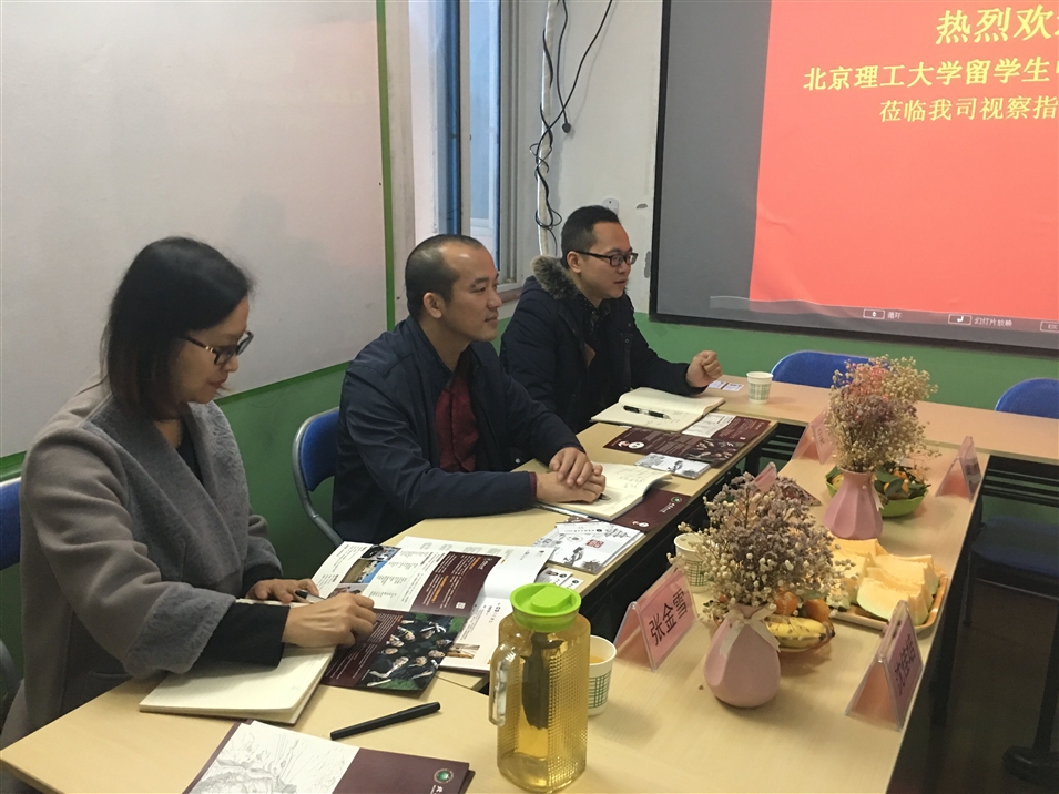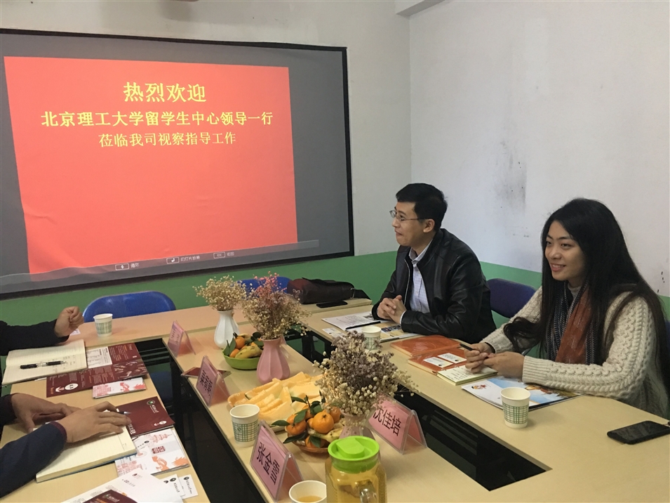 2017年11月21日上午,北京理工大學留學生中心領導趙坤副主任與沈佳培蒞臨廣西金沛教育發(fā)展有限公司視察指導工作,由我司董事長粟宥朝、校長張金雪、與國際部吳琪陪同。