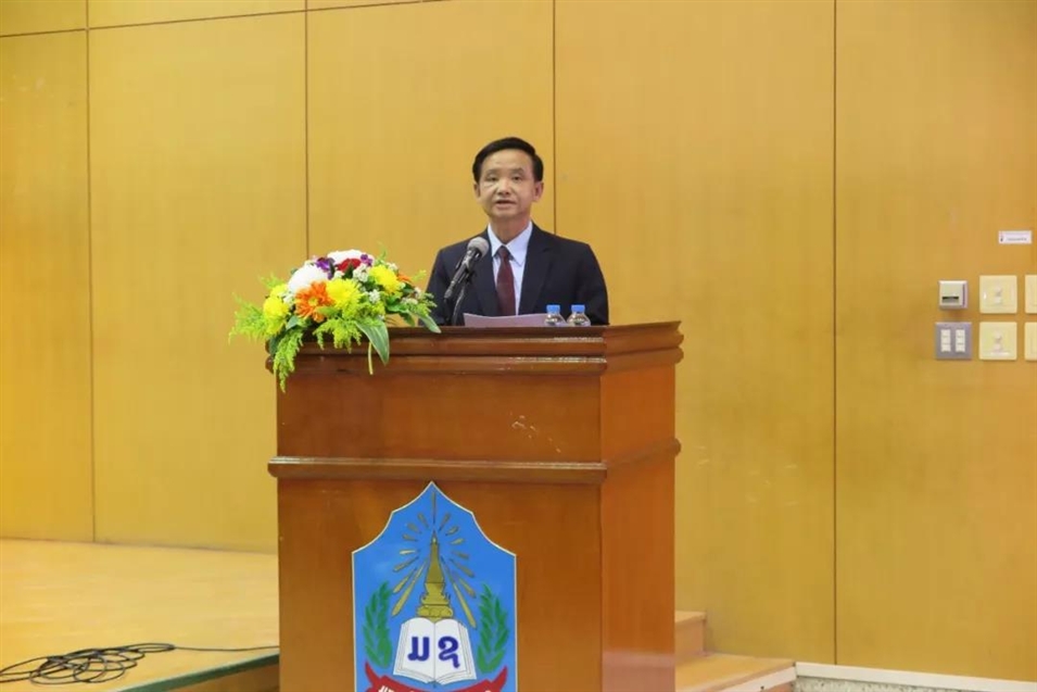 老撾國立大學(xué)副校長洪佩·占塔馮致歡迎辭。他代表老撾國立大學(xué)全體師生對許琳參事及代表團一行到來表示熱烈歡迎!洪佩·占塔馮副校長回顧了老撾國立大學(xué)孔子學(xué)院從建立到快速發(fā)展的歷程。他說,許琳參事在任孔子學(xué)院總部總干事、中國國家漢辦主任期間,對老撾國立大學(xué)孔子學(xué)院的發(fā)展給予了熱情關(guān)懷,并大力推動“中國政府援老撾國立大學(xué)孔子學(xué)院項目”的落實,他代表國立大學(xué)對許琳參事表示衷心感謝!他同時還表示,許琳參事本次講座的主題非常有意義,對教育全球化的發(fā)展提出了機遇和挑戰(zhàn),也有利于促進老撾國立大學(xué)鏈接區(qū)域與國際的未來發(fā)展。