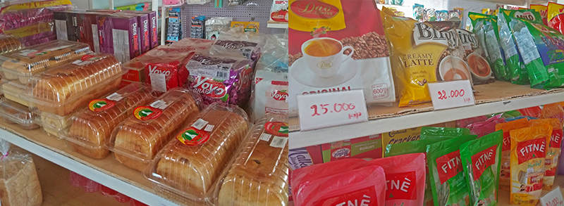 旁邊的貨架上有老撾的特色咖啡和面包,咖啡香氣濃郁,面包對(duì)我而言,有種難以言表的味道,不過勝在價(jià)格實(shí)惠。