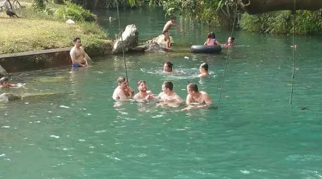 (3)注意:由于小乘佛教的緣故,老撾人一般穿著平時(shí)穿的T恤和短褲游泳,隨著外來游客增多,水池旁有增設(shè)換泳衣的小房間,雖然沒有硬性規(guī)定,但是出于尊重和禮貌,請(qǐng)不要穿著比基尼等太暴露的泳衣,也不要在水中過于親昵,推薦嘗試像老撾人一樣T恤短褲游泳。