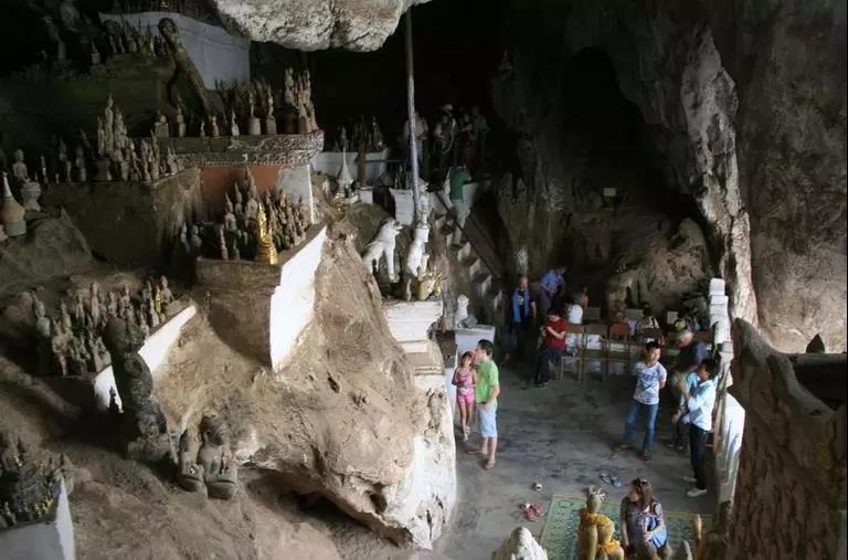 坦普坎溶洞是老撾人心中神圣的地方,受歡迎的大部分原因是因?yàn)槿芏蠢锏臑a湖,主洞室供奉著一尊泰國(guó)風(fēng)格的青銅臥佛,有幾條幽深的地道從主洞室分岔進(jìn)入山腹。