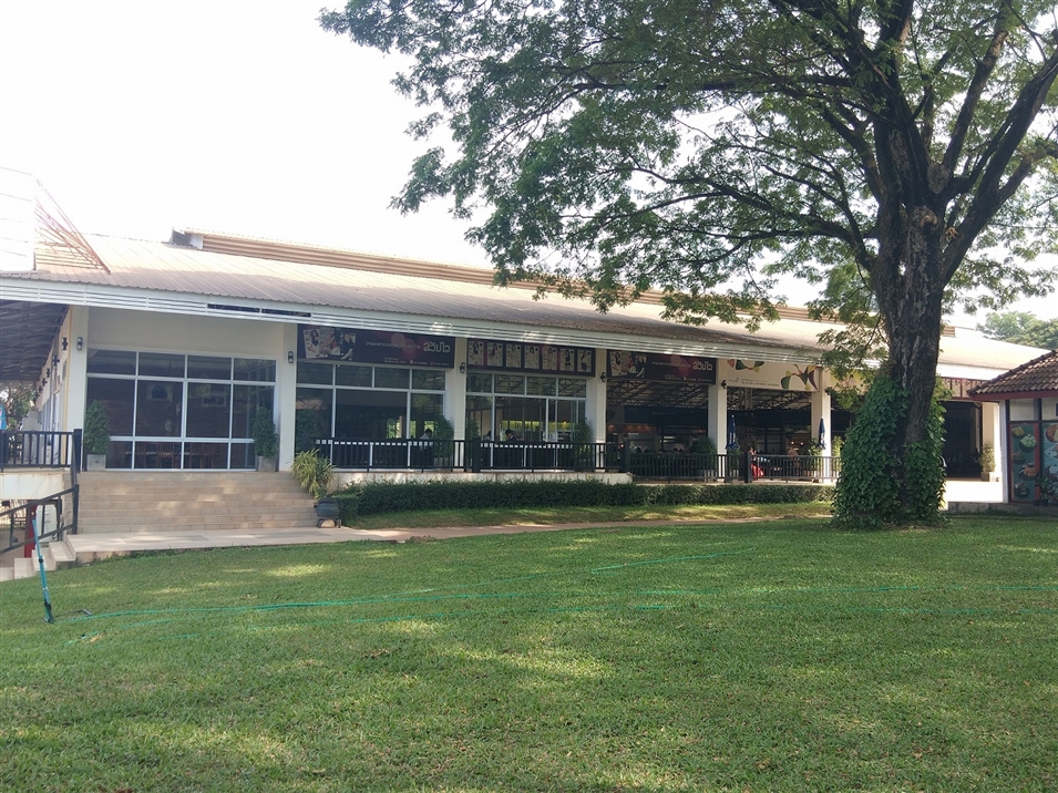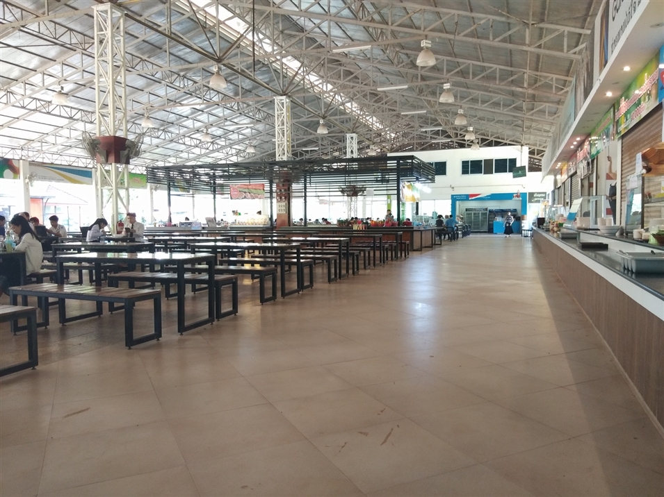 老撾國立大學的食堂帶有很濃郁的東南亞風格,與中國高校的密封式建筑不同,它的四面圍墻基本都以玻璃窗和柱子代替,因此通風和采光都很不錯,食堂里不會充斥著各種食物交雜的悶熱氣息。