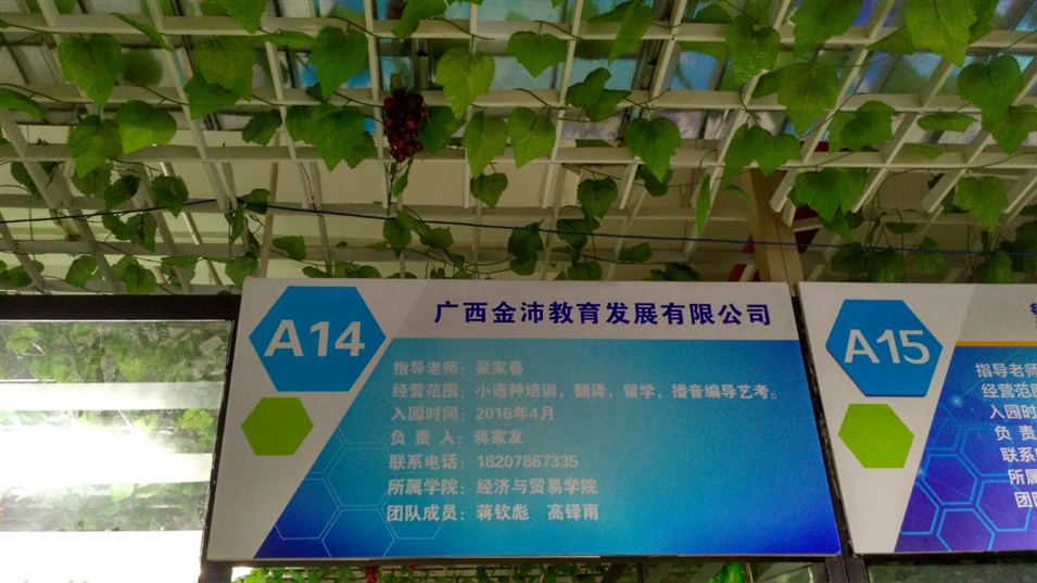 金沛教育財經(jīng)學(xué)院校區(qū)位于廣西財經(jīng)學(xué)院相思湖校區(qū)大學(xué)生創(chuàng)新創(chuàng)業(yè)孵化基地A14