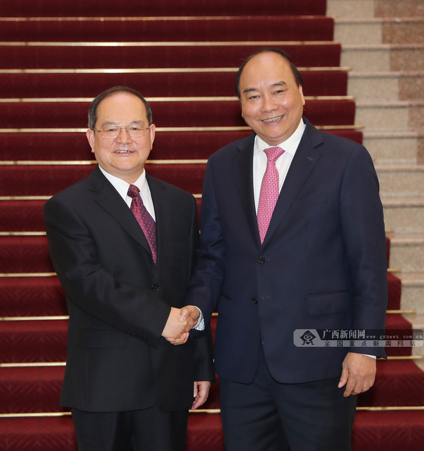 319日,自治區(qū)黨委書(shū)記鹿心社在河內(nèi)拜會(huì)越南總理阮春福。記者 黃克 攝
